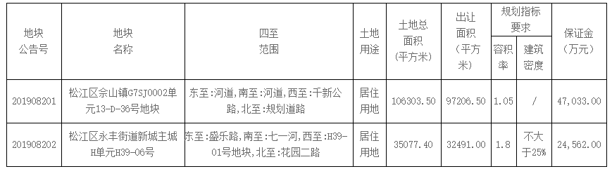 近日,上海规土局发布公告显示,将以招挂复合方式,出让2宗宅地。地块分别位于佘山镇和永丰街道,总出让面积约12.97万㎡(约194.5亩),总建筑面积16.06万㎡,总起价357,970万元,预计7月19日出让。